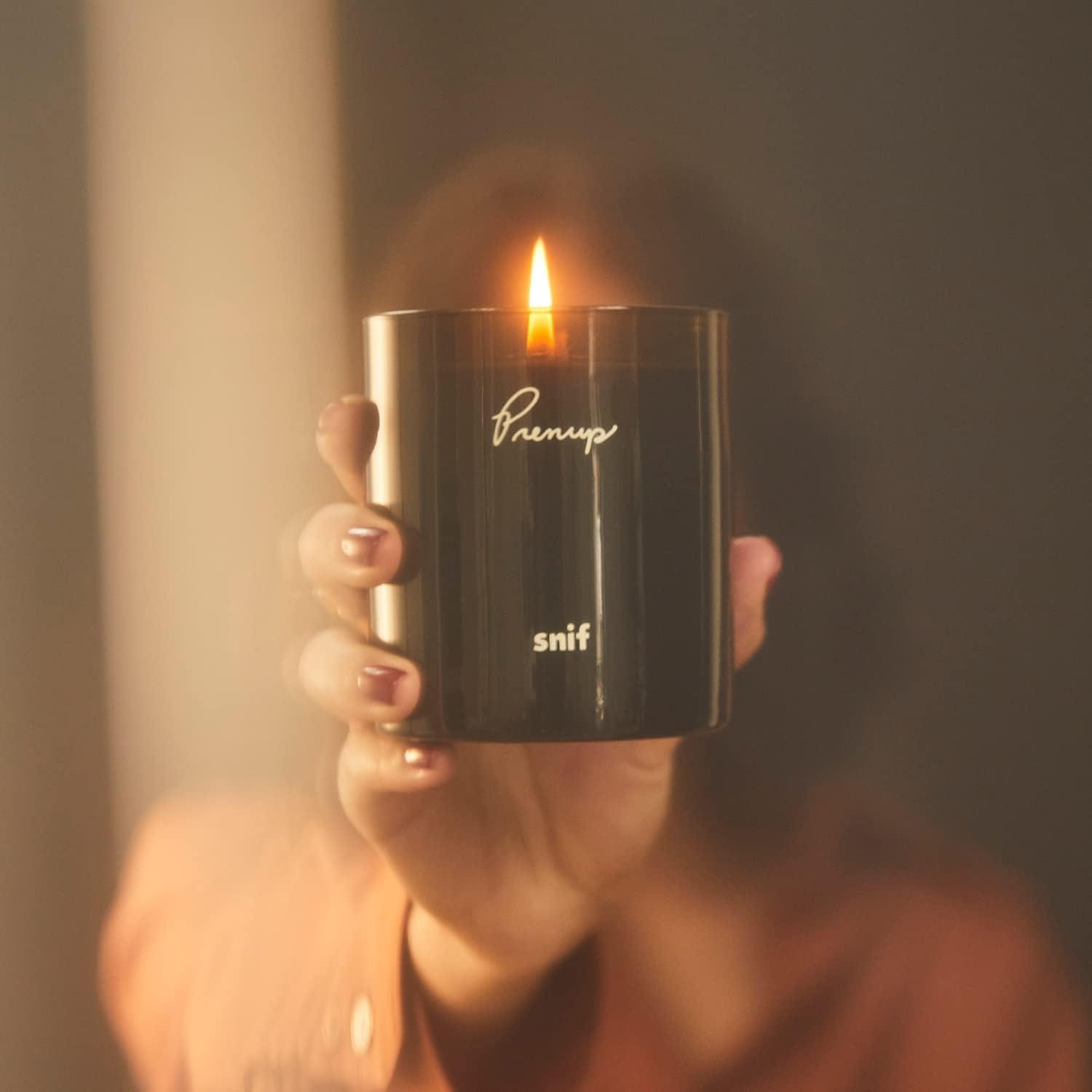 Off The Grid Luxury Scented Candle by Snif, Warm and Calming Candle, 50+ Hours, 100% Cotton Fiber Wicks, Soy Wax Blend, Non-Toxic, Vegan, 8.5 oz(Prenup)
