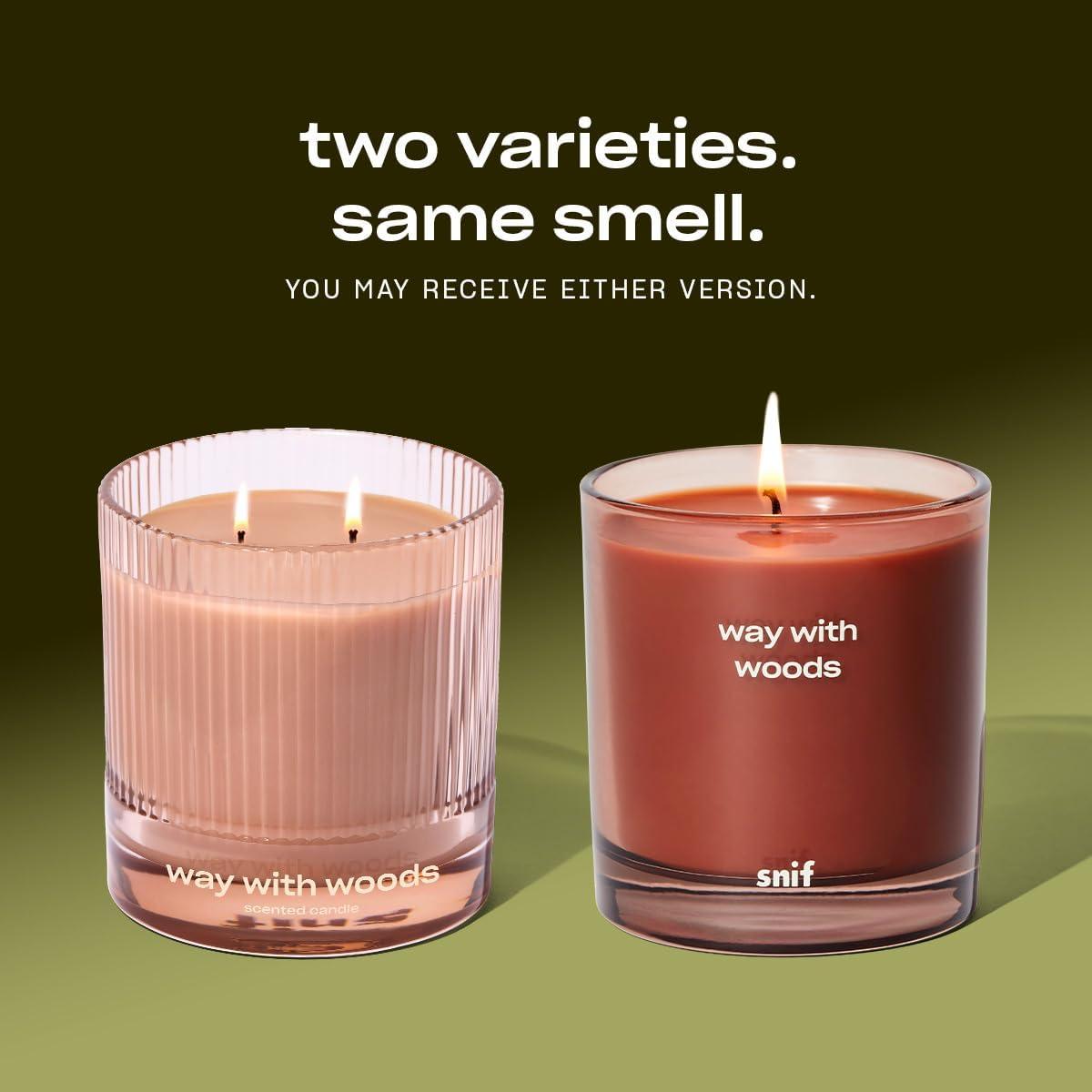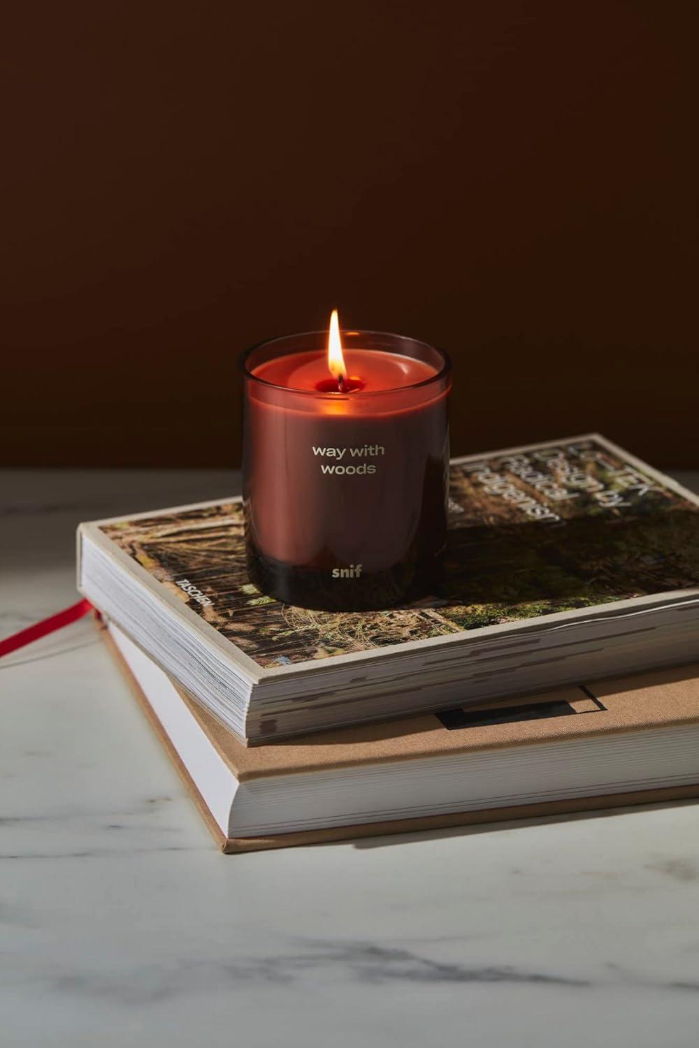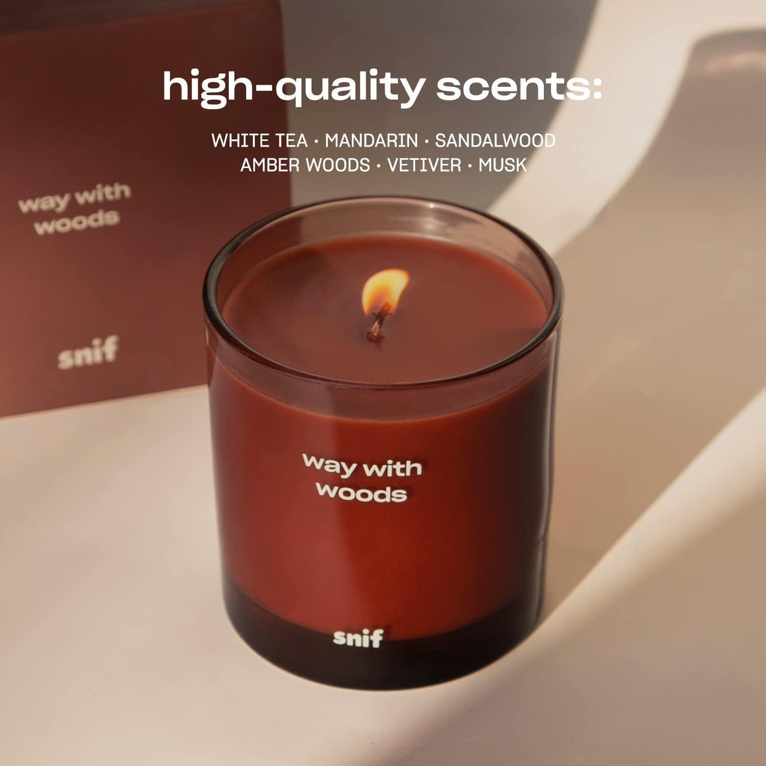 Off The Grid Luxury Scented Candle by Snif, Warm and Calming Candle, 50+ Hours, 100% Cotton Fiber Wicks, Soy Wax Blend, Non-Toxic, Vegan, 8.5 oz(Way with Woods)