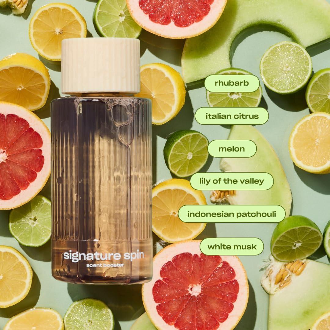 SIGNATURE SPIN: A classic scent with modern cleaning power. The Everything Wash detergent removes dirt, stains, and odors, while the scent of Signature Spin keeps it fresh with dewy melon, zesty Italian citrus, tart rhubarb and classic white musk. Whether it’s a quick load or a heavy duty wash, this scent will make it feel timeless.